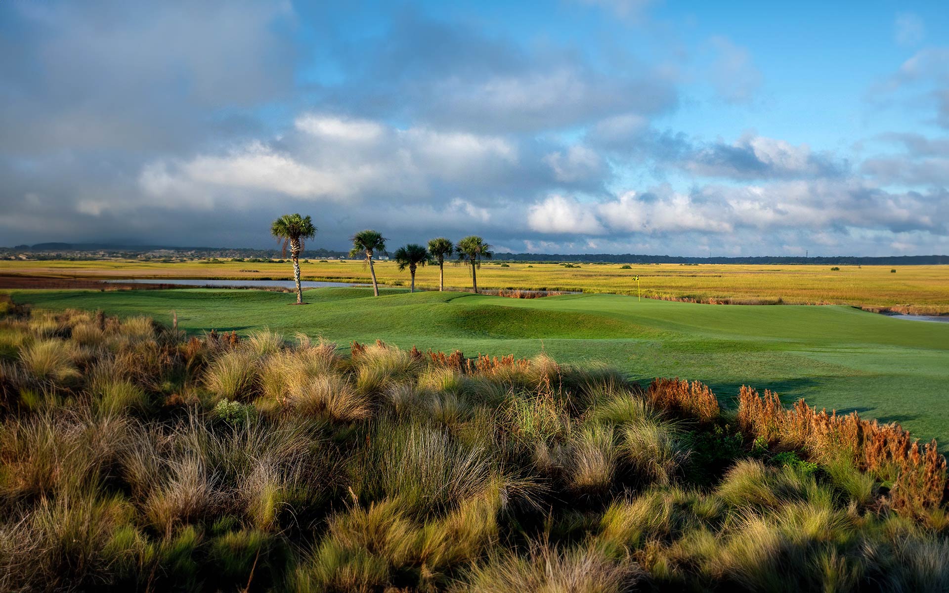 Designed by the renowned golf course architect Mark McCumber, the Marsh Creek golf course spans across lush green fairways, framed by towering oak trees and pristine water features. The course seamlessly blends the natural beauty of the surrounding marshes, creeks, and lakes, creating a scenic and tranquil atmosphere that enhances your golfing experience.